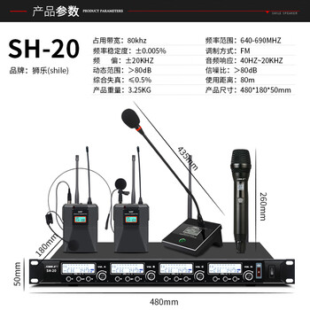 SH-20主机× 1、会议鹅颈话筒 × 4、6.5音频线 × 1、电源适配器 × 1、说明书 × 1、保修卡 × 1;
