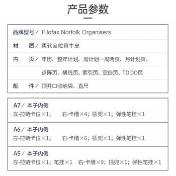 Filofax记事本英国进口荔枝纹真皮活页笔记本手帐本商务办公Norfolk诺福克系列 A7 褐灰色022641