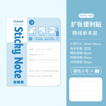 三年二班 简约可折叠扩张便利贴32张/本学生用考研有粘性便签贴笔记贴补充贴N次贴便签纸 横纹(小号)
