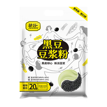 捷氏 黑豆豆浆粉600g高蛋白质营养早餐富含钙大豆粉速溶冲饮豆制品