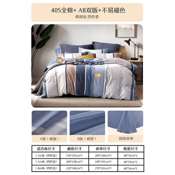 水星家纺四件套床上纯棉100%全棉透气被套床单双人1.5米x2米床弗利安家居馆