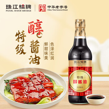 珠江桥牌特级醇酱油500ml 0添加脂肪酿造豉油炒菜凉拌蒸鱼 中华老字号