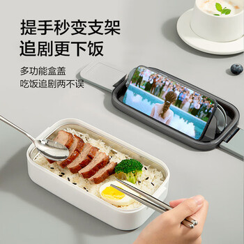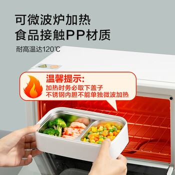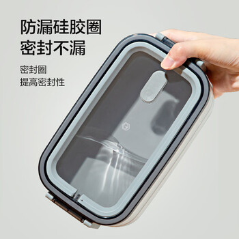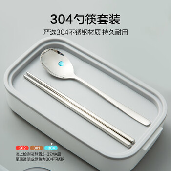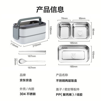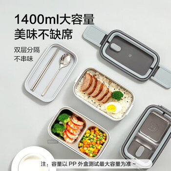 京东京造 饭盒 上班族304不锈钢便当餐盒小学生可微波炉双层1.4L 配筷勺