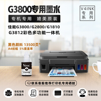 V4INK适用佳能g3800墨水黑色g2800墨水890墨水g1810 g2810打印机颜料墨水135ml