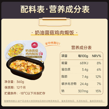 必胜客奶油菌菇鸡肉焗饭360g*1盒 微波加热即食 儿童家庭早餐开学季速冻