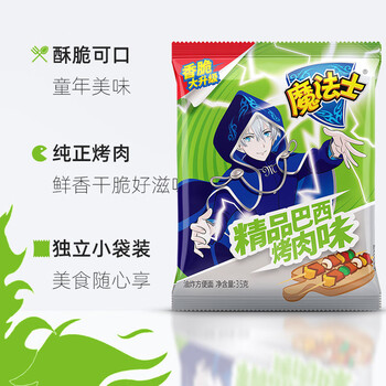 魔法士干脆面方便面即食面干吃休闲小零食捏碎面 巴西烤肉味35g*30袋