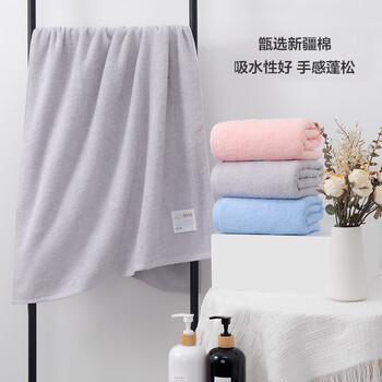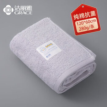 洁丽雅(Grace)A类抗菌浴巾纯棉男女家用柔软吸水速婴幼儿可用浴巾单条装 灰色