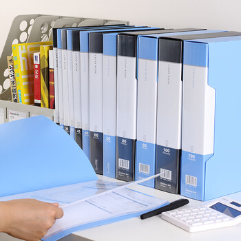 齐心(COMIX) A4/80页资料册配外壳文件活页收纳册插袋档案文件夹学生试卷科目收纳袋 蓝色PF80AK-1