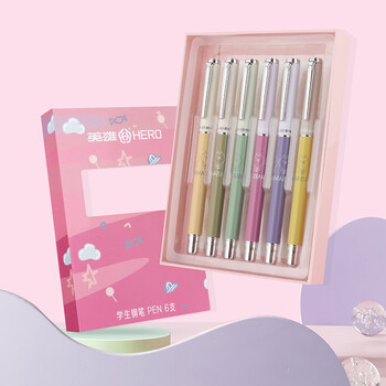 英雄(HERO) 钢笔 学生卡通文具三年级正姿练字日常书写套装 女款 6支装(颜色随机)
