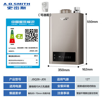 史密斯(A.O.SMITH)13升精钢燃气热水器 不锈钢换热器包8年 负压燃烧更安全 恒温大水量 家用天然气 JSQ26-JD5