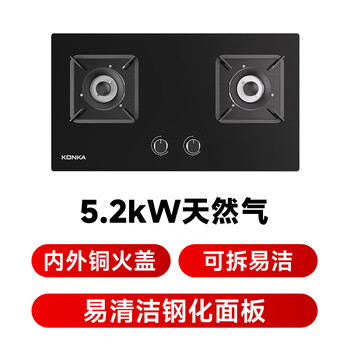 康佳(KONKA)燃气灶煤气灶双灶具 5.2kW内外铜火盖铝炉头台式嵌入式 防爆面板JZT-B500F(DH36)(天然气)