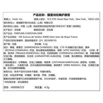 Fresh馥蕾诗经典护唇膏4.3g滋养护唇护肤品 生日礼物送女友送男友