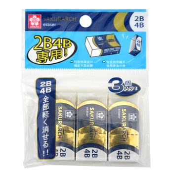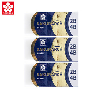 樱花(SAKURA)学生橡皮擦2B4B橡皮考试专用美术素描绘图 3块套装(蓝色)