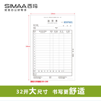 西玛(SIMAA)8007三联送货单 32k 190*130mm 20组10本装 优尚精品 销货清单销售出货出库无碳复写单据