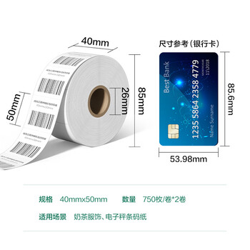 得力40*50mm 750张*2卷 珊瑚海三防热敏标签纸 奶茶服饰不干胶打印纸 12009【适配3寸标签机720C等】