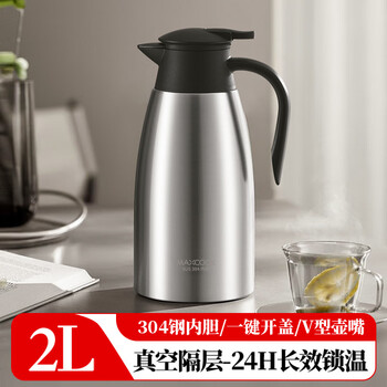 美厨(maxcook)保温壶热水瓶 304不锈钢真空暖水壶家用大容量开水瓶2L本色MCB390