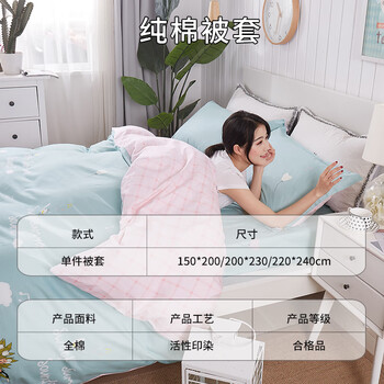 艾薇 被套单件 纯棉被套双人床上用品全面被罩单件 伊尚蓝 200*230cm