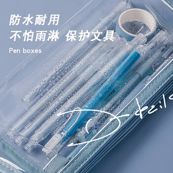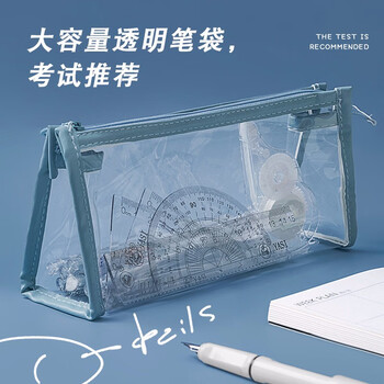 三年二班ins网红少女心简约大容量透明三角笔袋学生用品高颜值日系防水文具袋收纳袋铅笔盒女生化妆包 绿豆绿