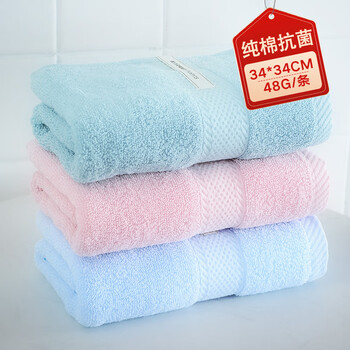 洁丽雅(Grace)新疆棉抗菌方巾3条装纯棉柔软舒适宝宝儿童吸汗吸水小毛巾擦汗巾
