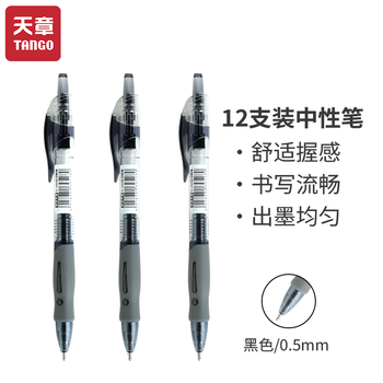 天章 (TANGO)新绿天章 9513 顺滑速干中性笔按动签字笔办公文具 0.5子弹头黑色12支装