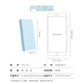 晨光(M&G)文具100张3色便利贴 粘性标签贴姓名贴 76*34mm记事留言贴优事贴便签本子 3条装YS-14