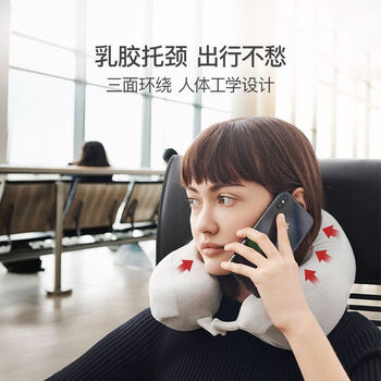 网易严选 泰国93%天然乳胶U型枕颈椎枕飞机旅行头枕头护脖子亚麻灰