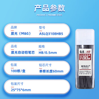 晨光(M&G)文具HB/0.5mm自动铅笔替芯 石墨铅芯 大容量铅芯盒 100根/盒 单盒装ASLQ3108HB5