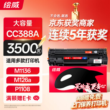 绘威CC388A 88A硒鼓 适用惠普HP P1106 plus P1007 P1108 M126nw m126a M1136 mfp M1213nf M1216nfh打印机墨盒