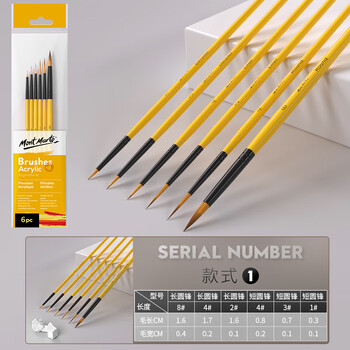 蒙玛特(Mont Marte)水粉笔6支装 水彩画笔儿童水彩画画笔美术颜料勾线笔 圆头排笔学生水彩笔套装BMHS0008 速写 马克笔绘画