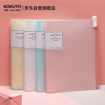 国誉(KOKUYO)A4资料册对折型文件夹淡彩曲奇学生试卷夹 透明40袋内页 1个 WSG-CBCN40T