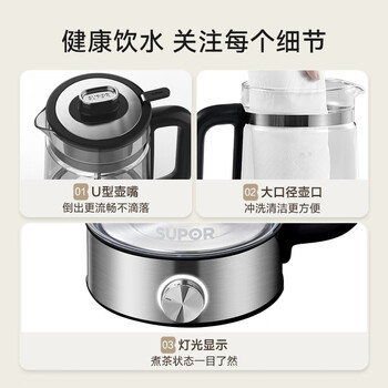 苏泊尔(SUPOR)养生壶蒸汽喷淋升级有钛材质复古煮茶器泡茶烧水壶煮茶壶办公家用电热水壶保温玻璃花茶壶SW-10C05
