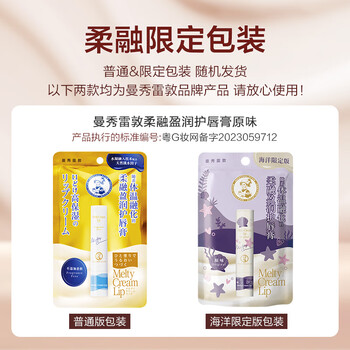 曼秀雷敦柔融盈润润唇膏男女保湿滋润防干裂原味3.3g两款包装随机发货