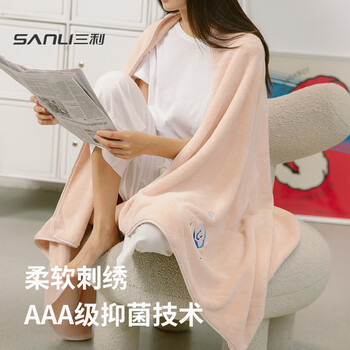 三利抗菌刺绣浴巾A类成人家用柔软吸水速干男女通用 140*70cm 贝壳粉