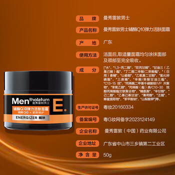 曼秀雷敦男士Q10弹力面霜50g 滋润保湿乳液 补水护肤品男