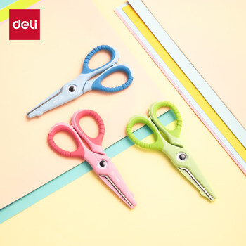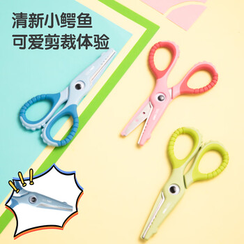 得力(deli)儿童剪刀剪子小学生安全手工剪刀鳄鱼圆头美工小剪刀文具一年级幼儿园3-6岁 绿色6071