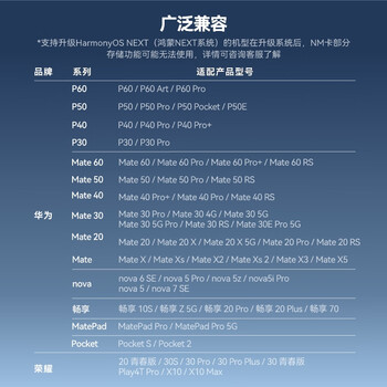 雷克沙(Lexar)256GB NM存储卡(NM CARD)华为荣耀手机平板内存卡 适配Mate/nova/P多系列 畅快拍摄存储