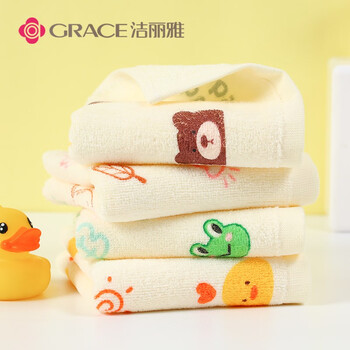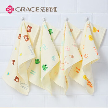洁丽雅(Grace)A类纯棉洗脸可爱家用卡通儿童小毛巾宝宝柔软吸水婴儿童面巾 4条