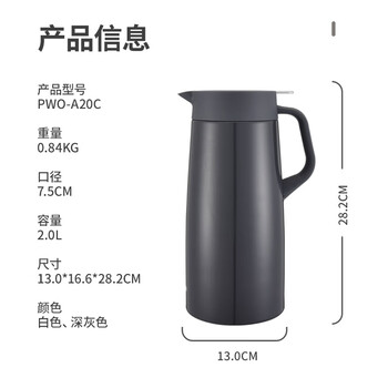 虎牌(TIGER)保温壶 304不锈钢时尚保温/保冷壶PWO-A20C-HD 深灰色 2L