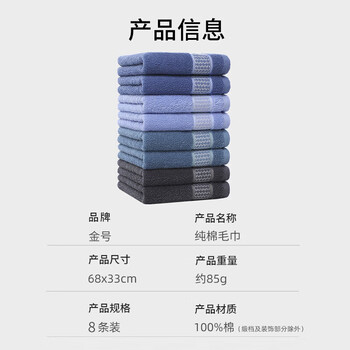 金号纯棉毛巾 A类全棉吸水洗脸毛巾 成人素色洁面巾8条68*33cm