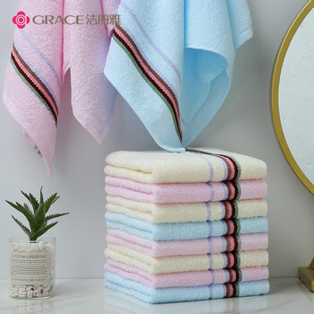 洁丽雅(Grace)新疆纯棉5A级抗菌毛巾十条装缎档螺旋柔软舒适洗脸毛巾擦脸巾