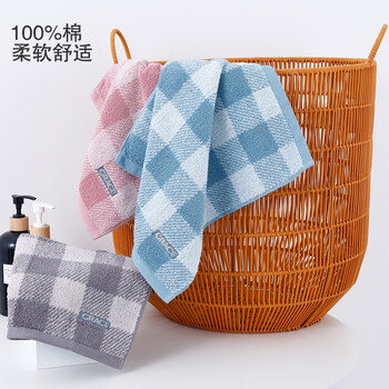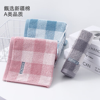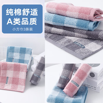 洁丽雅(Grace)A类抗菌防螨纯棉方巾3条装柔软舒适加厚吸水小毛巾擦汗巾