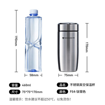 万象(WANXIANG)保温杯316不锈钢内胆460ML商务办公带茶漏大容量弧形泡茶杯