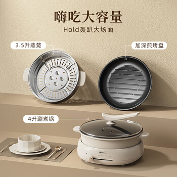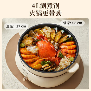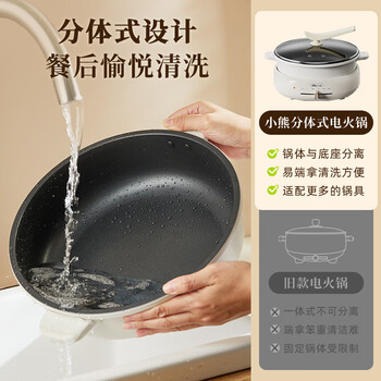 小熊(Bear)电火锅 多功能料理锅 电煮锅家用火锅专用锅分体式多功能锅料理烤肉涮肉锅火锅锅C40W2 4L