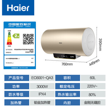 海尔(Haier)【QA3】60升电热水器 3KW速热 金刚三层胆 EC6001-QA3 *