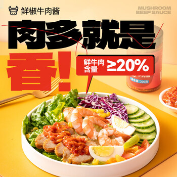 云山半低脂肪鲜椒牛肉酱200g 0添加蔗糖牛肉酱 健身轻食沙拉拌面调味酱
