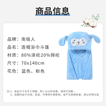 南极人(Nanjiren)宝宝浴巾儿童带帽斗篷浴袍新生儿超软吸水浴巾洗澡连帽包巾速干