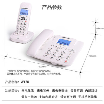 中诺数字无绳电话机 无线座机 子母机一拖一套装 一键拨号 免提通话 固定电话 办公家用固话 W128白色