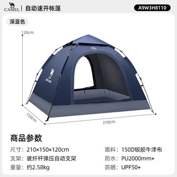骆驼(CAMEL)户外帐篷郊游露营防雨防晒2-3人加厚自动免搭速开帐篷 8110深蓝