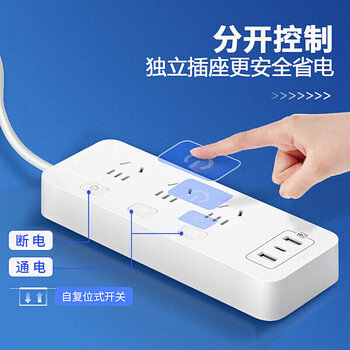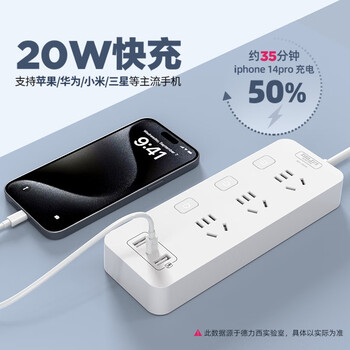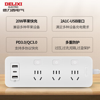 德力西(DELIXI) 3C认证国标20w快充分控插座usb/Type-C口排插/插排/插线板/接线板 全长1.8米带开关