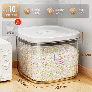 佳帮手米桶10斤按压式密封防潮家用防虫加厚大米箱缸面粉桶杂粮桶送量杯